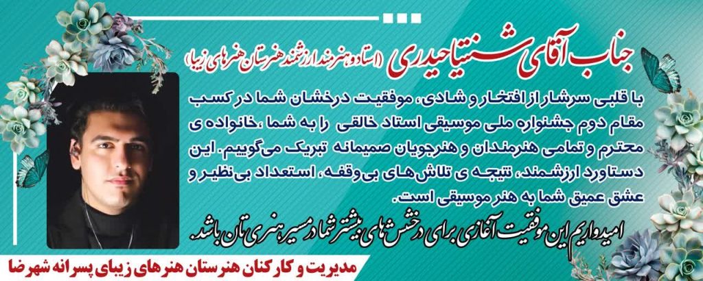 شنتیا حیدری، آهنگساز جوان، با قطعهی تحسینبرانگیز خود با عنوان «هِیمان برای کوئینتِ سازهای ایرانی»، موفق شد مقام دوم بخش موسیقی بیکل...